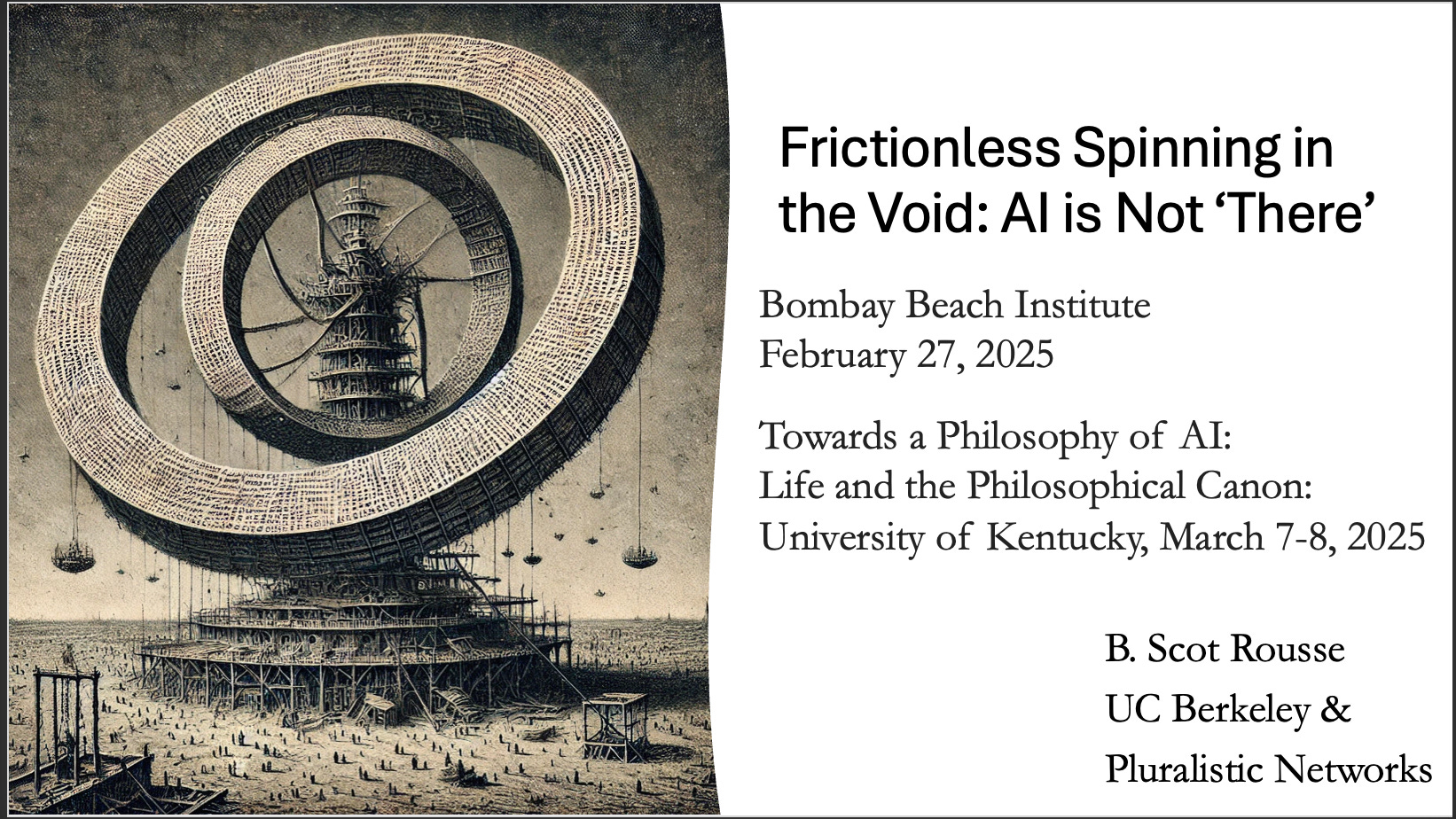 Lately, I've been on a mini "philosophy tour," traveling around giving a talk about AI called "Frictionless Spinning in the Void: AI is not 'There'."